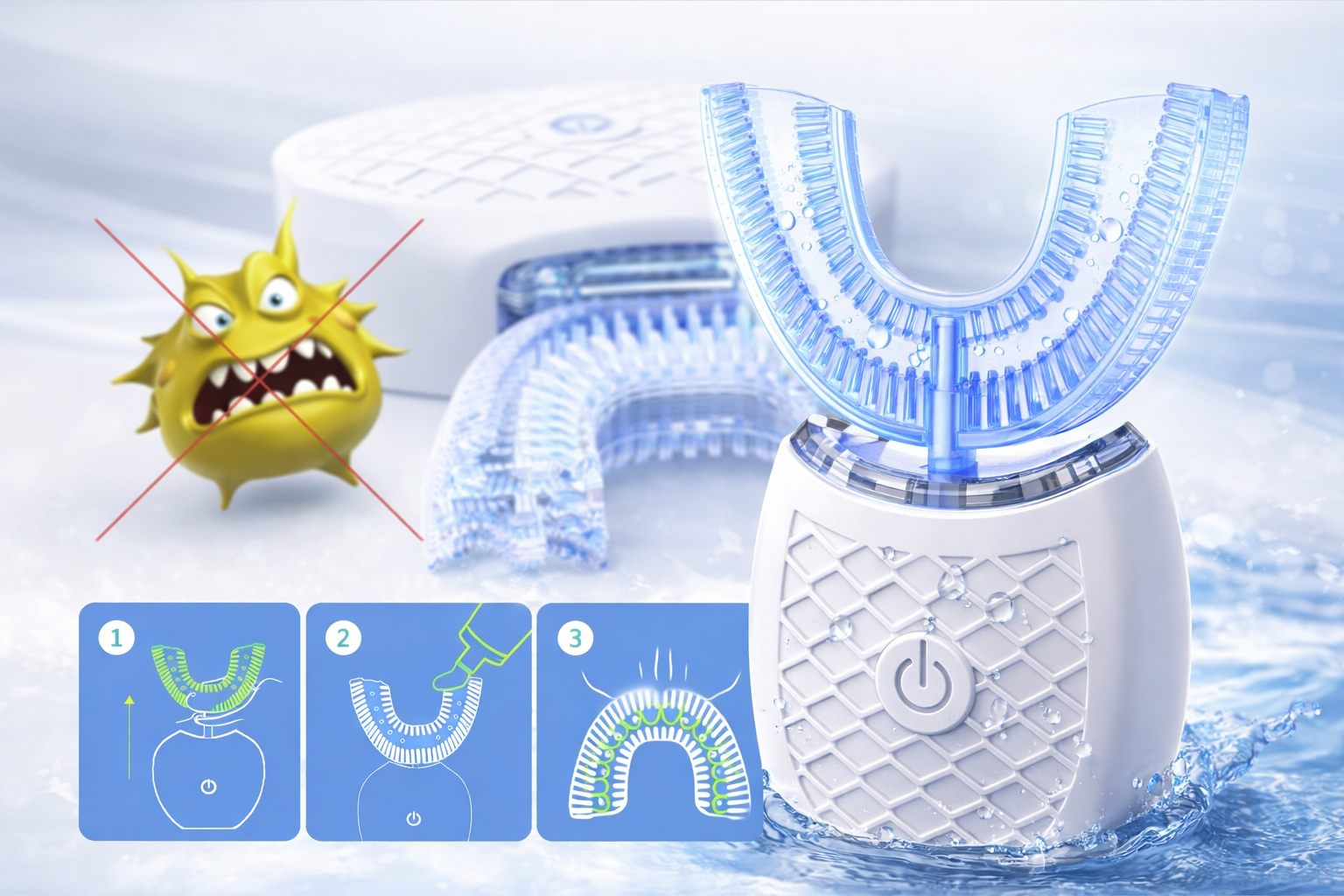 U-kujuline elektriline hambahari ümarate harjastega, õrn ja mugav hambaid puhastada igast suunast, ilma raskesti ligipääsetavate kohtadeta. 4 lülitatavat režiimi, IPX7 veekindluse tase, kompaktne ja kaasaskantav. Omadused: Valmistatud esmaklassilisest ABS-ist ja silikoonmaterjalist, kompaktne suurus, kerge, hõlpsasti kasutatav ja kaasaskantav. Täiustatud harjapea ümarate harjastega, pehme, mugav, ei kahjusta igemeid. 4 lülitatavat režiimi: tugev režiim / keskmine režiim / kõrgsageduslik massaaž / hambakatu eemaldamise režiim. U-kujuline harjapea disain, puhastab hambaid igast suunast, ilma raskesti ligipääsetavate kohtadeta. IPX7 veekindluse tase, kergesti puhastatav, säilitab isikliku hügieeni. Laadimisaeg on alla 90 minuti, kuid kestab kaua. Mälufunktsioon on tõhusam ja mugavam kasutada. Märkus: Toote värvus võib monitori sätete või muude tegurite tõttu veidi erineda, palun eelistage värvi. Aitäh! Spetsifikatsioonid: Materjal: ABS + silikoon Värv: Valge / Must / Sinine / Roosa (valikuline) Nimipinge: 3,2–3,7 V Nimivõimsus: Alla 5 W Voolutugevus: 1,6 A Režiim: Tugev režiim / Keskmine režiim / Kõrgsageduslik massaaž / Puhastusrežiim Veekindluse tase: IPX7 Laadimisaeg: Alla 90 minuti Sisseehitatud aku: 3,7 V 300 mAh liitiumaku Toote mõõtmed: 10,3 * 5,2 * 2,5 cm / 4,1 * 2,0