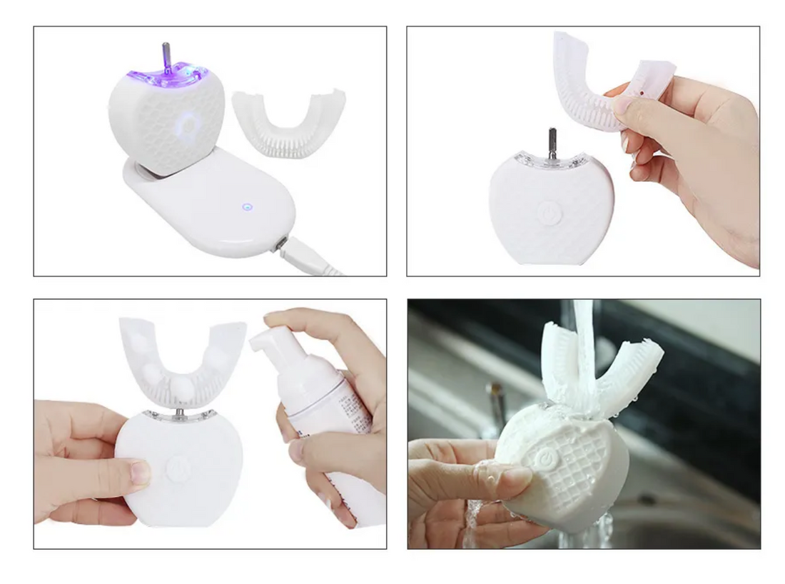 U-kujuline elektriline hambahari ümarate harjastega, õrn ja mugav hambaid puhastada igast suunast, ilma raskesti ligipääsetavate kohtadeta. 4 lülitatavat režiimi, IPX7 veekindluse tase, kompaktne ja kaasaskantav. Omadused: Valmistatud esmaklassilisest ABS-ist ja silikoonmaterjalist, kompaktne suurus, kerge, hõlpsasti kasutatav ja kaasaskantav. Täiustatud harjapea ümarate harjastega, pehme, mugav, ei kahjusta igemeid. 4 lülitatavat režiimi: tugev režiim / keskmine režiim / kõrgsageduslik massaaž / hambakatu eemaldamise režiim. U-kujuline harjapea disain, puhastab hambaid igast suunast, ilma raskesti ligipääsetavate kohtadeta. IPX7 veekindluse tase, kergesti puhastatav, säilitab isikliku hügieeni. Laadimisaeg on alla 90 minuti, kuid kestab kaua. Mälufunktsioon on tõhusam ja mugavam kasutada. Märkus: Toote värvus võib monitori sätete või muude tegurite tõttu veidi erineda, palun eelistage värvi. Aitäh! Spetsifikatsioonid: Materjal: ABS + silikoon Värv: Valge / Must / Sinine / Roosa (valikuline) Nimipinge: 3,2–3,7 V Nimivõimsus: Alla 5 W Voolutugevus: 1,6 A Režiim: Tugev režiim / Keskmine režiim / Kõrgsageduslik massaaž / Puhastusrežiim Veekindluse tase: IPX7 Laadimisaeg: Alla 90 minuti Sisseehitatud aku: 3,7 V 300 mAh liitiumaku Toote mõõtmed: 10,3 * 5,2 * 2,5 cm / 4,1 * 2,0