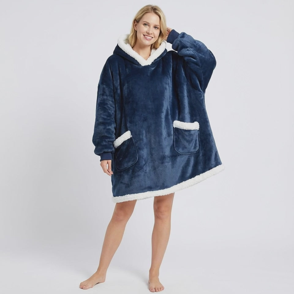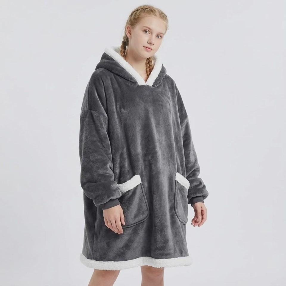 Lahtine siluett pakub maksimaalset mugavust, samas kui suur kapuuts ja avarad taskud hoiavad sind mõnusalt soojas ka jahedamatel päevadel. See on ideaalne valik õhtuteks diivanil, kodust töötamiseks, vabadeks päevadeks või lihtsalt siis, kui soovid pingutuseta soojust ja mugavust.